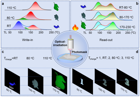 荧光高端智能防伪材料是解决目前全球性伪造问题的一个重要研究方向,张翔宇团队长期致力于荧光长余辉发光材料的研究,发表的研究成果通过掺杂构建局部深陷阱和增加深陷阱填充能力的策略,设计并开发了一种新型多波段NaGdGeO4:Pb,Tb长余辉存储荧光粉,不仅展现出多模白光发射,而且通过记忆陷阱的充能温度,实现对环境温度的智能响应和在单个荧光粉记录层上实现高通量多通道的荧光防伪。本研究不仅对余辉荧光机制提供了进一步的认识,也为构建智能响应防伪材料打开了新的应用领域。