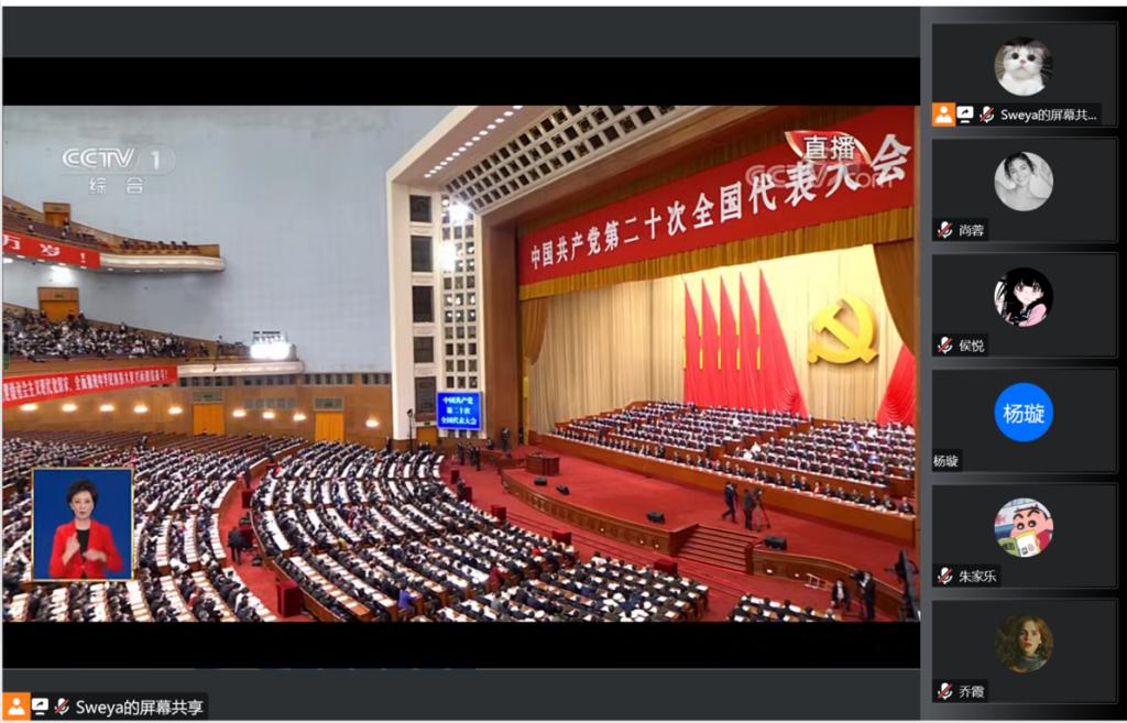 10月16日,中国共产党第二十次全国代表大会在北京人民大会堂开幕。习近平代表第十九届中央委员会向大会作报告。5123导航通五湖团委组织团员青年以青马班和团支部为基本单元开展组织化学习,主会场设在渭水校区WT1202教室,各团支部设置分会场在腾讯会议线上参加,本次观看开幕会活动由学院团委书记杨雪菲主持。